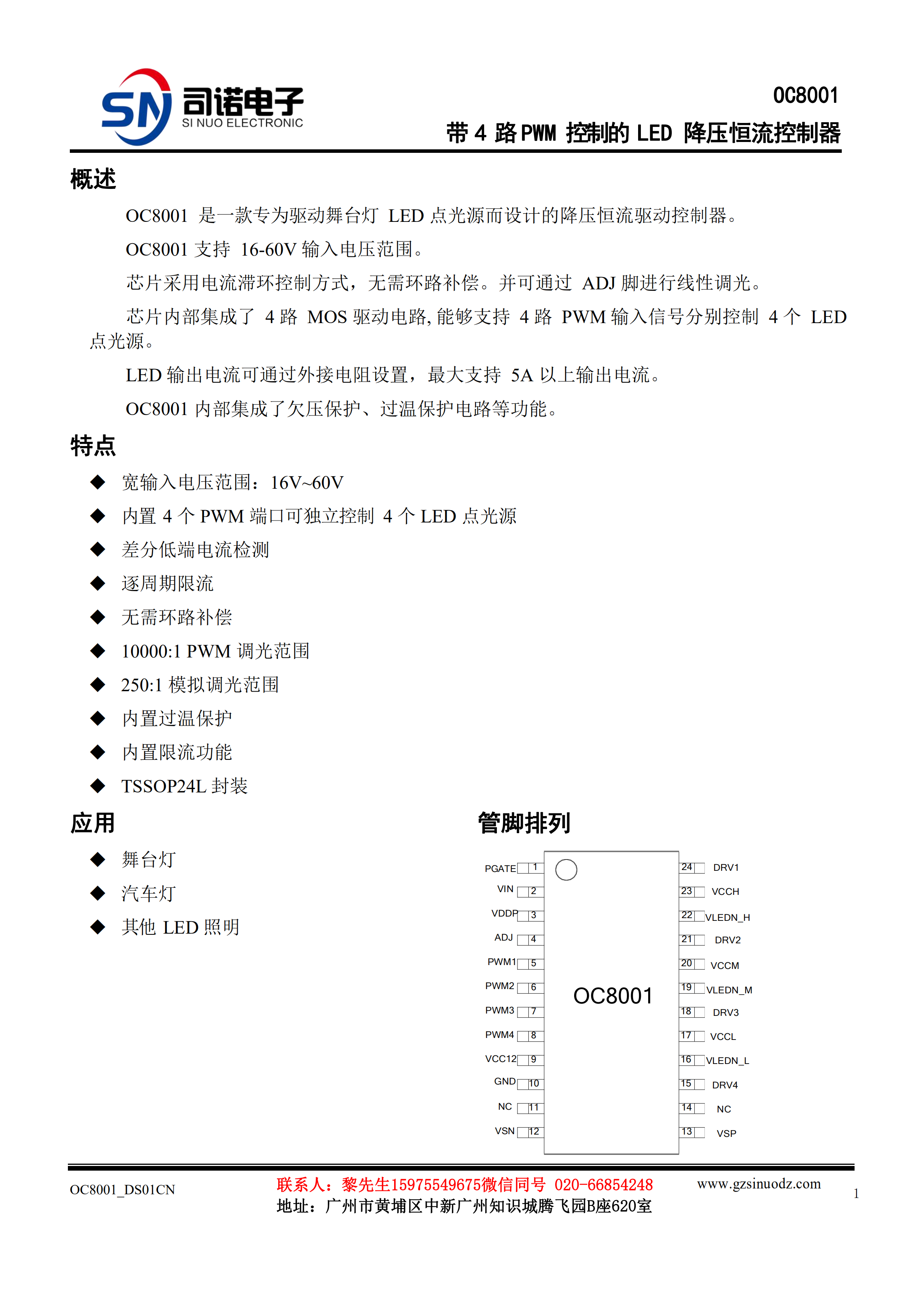 OC8001舞台灯光、户外亮化、车灯专用LED驱动方案